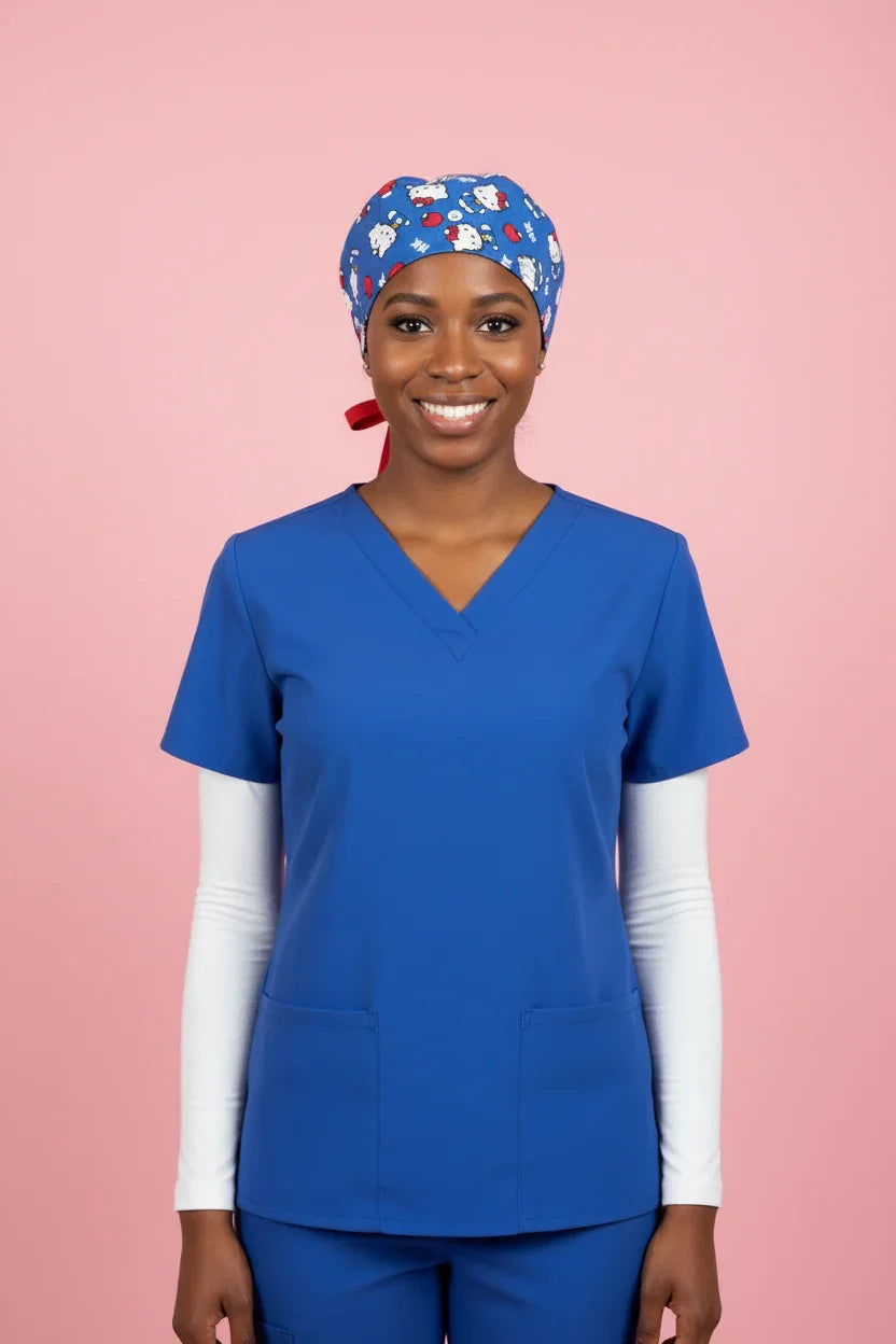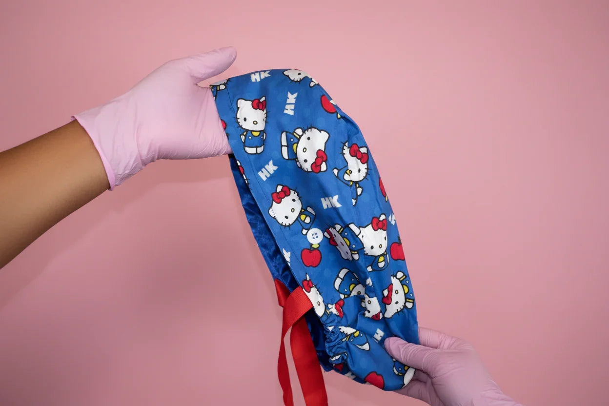Add a pop of personality to your workday with this Blue Hello Kitty Scrub Cap, designed for comfort, style, and all-day wear. The playful print pairs a vibrant blue background with iconic Hello Kitty details, making it a standout accessory for healthcare professionals who love fun, functional fashion.